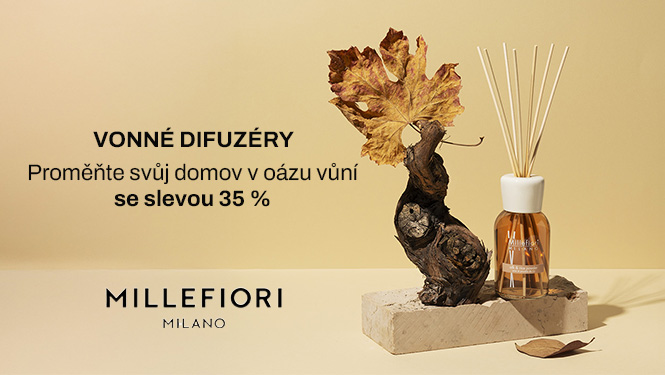Proměňte svůj domov v oázu vůní s aroma difuzéry Millefiori Milano. Objevte bohaté a dlouhotrvající aroma, které naplní každý prostor sofistikovanou a příjemnou atmosférou. Využijte jedinečnou akci a získejte své oblíbené difuzéry se slevou 35 %!