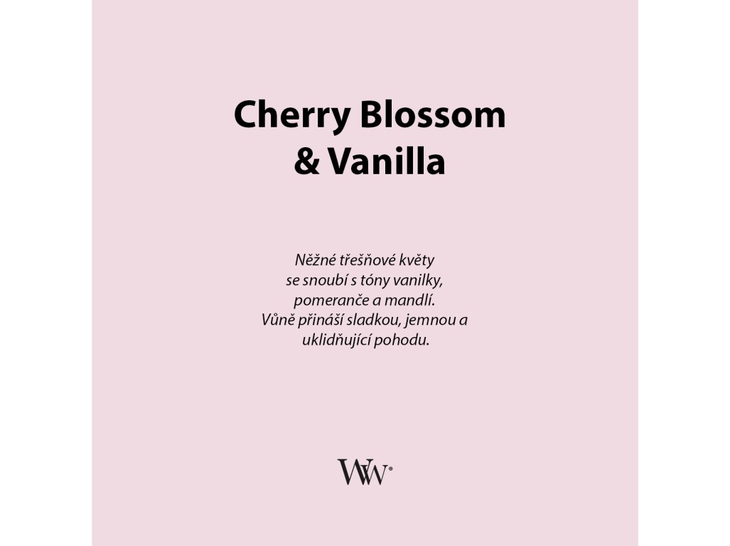 Něžné třešňové květy se snoubí s tóny vanilky, pomeranče a mandlí. Vůně přináší sladkou, jemnou a uklidňující pohodu.
