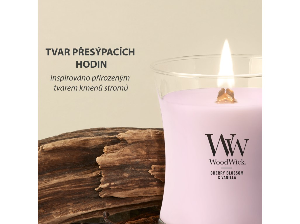 Střední váza WoodWick přináší vyvážený zážitek, který se snadno stane součástí každodenního rituálu. Jemné světlo, klidný zvuk praskajícího dřevěného knotu a pozvolné uvolňování vůně vytvářejí atmosféru, která působí přirozeně a nerušeně. Čisté, organické linie skleněné vázy odrážejí jednoduchost inspirovanou přírodními tvary a podporují pocit stability a rovnováhy. Každé zapálení svíčky připomíná krátký návrat ke klidu a soustředění. Střední váza je ideální pro každodenní rituály, kdy chceš do svého prostoru vnést harmonii a jemné spojení s přírodou. TIP: Pro rovnoměrné hoření nechte svíčku při každém zapálení rozpustit až ke kraji.