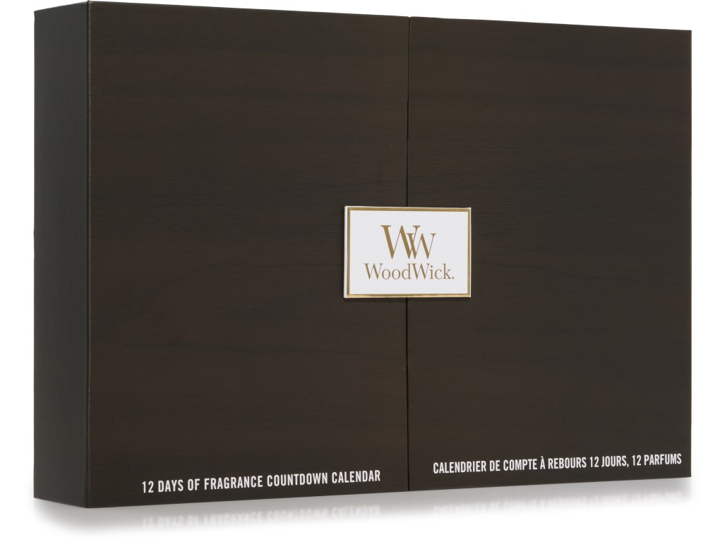 Obsahuje jednu votivní svíčku WoodWick v každé z následujících dvanácti vůní:Fireside, Fraser Fir, Wood Smoke, Spiced Blackberry, Pumpkin Praline, Lavender & Cedar, Santal Myrrh, Vanilla & Sea Salt, Cashmere, Patchouli Crème, Warm Wool, Tonka & Almond Milk