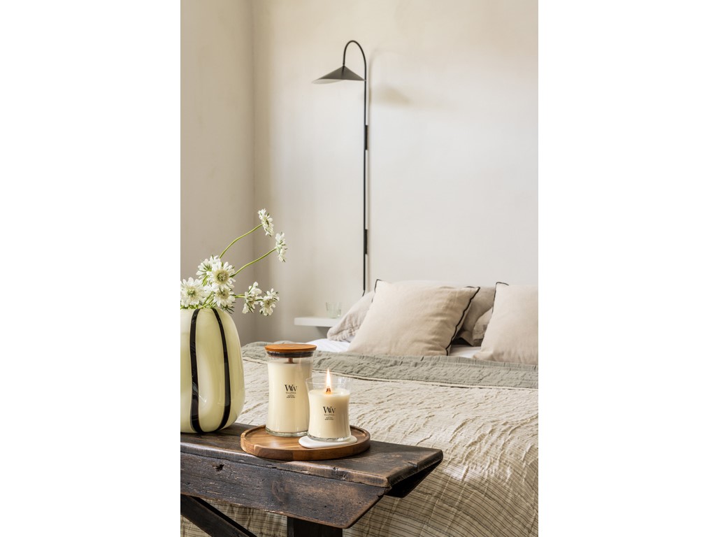 Elegantně tvarovaná střední svíčka s typickým dřevěným víčkem provoní váš domov a naplní ho jemným zvukem praskajícího knotu, který podpoří atmosféru pohodlí a útulnosti. Neboť domov je tam, kde praská oheň. Knot je vyroben z přírodního dřeva.
