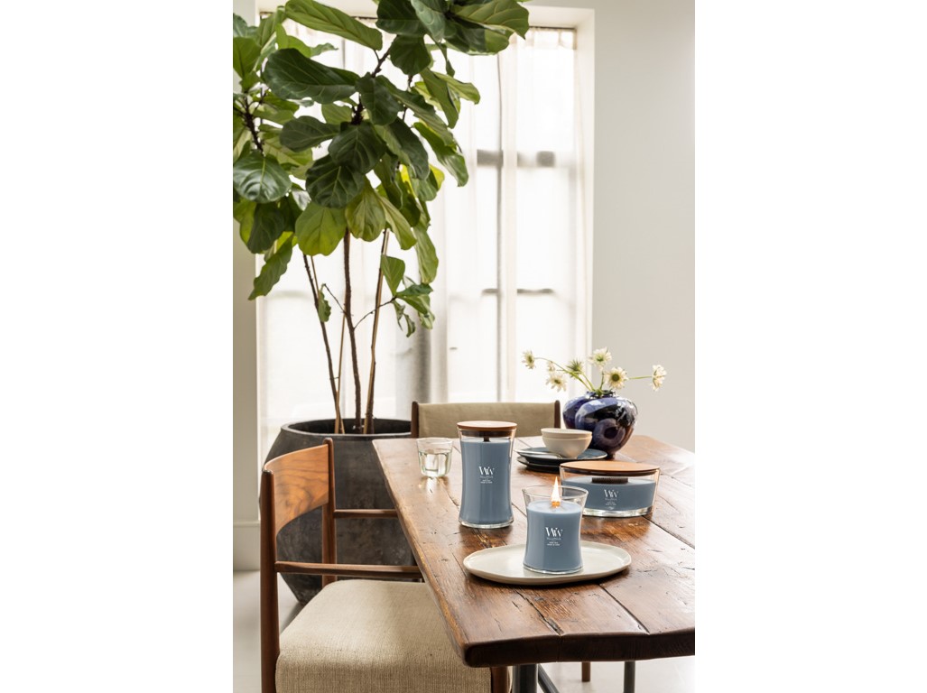 Elegantně tvarovaná střední svíčka s typickým dřevěným víčkem provoní váš domov a naplní ho jemným zvukem praskajícího knotu, který podpoří atmosféru pohodlí a útulnosti. Neboť domov je tam, kde praská oheň. Knot je vyroben z přírodního dřeva.