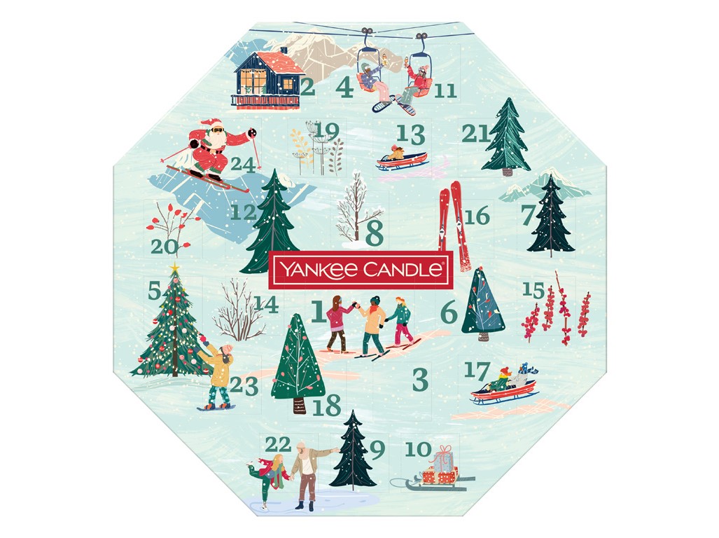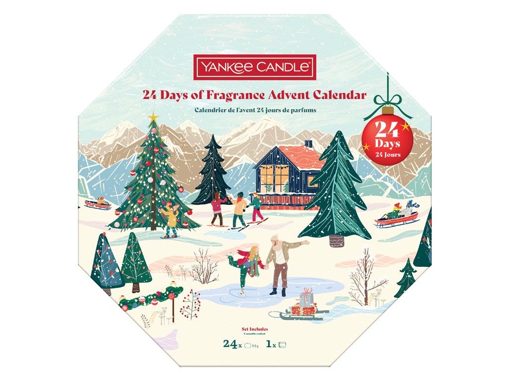 Voňavé překvapení každý prosincový den až do Vánoc. Tento kalendář ukrývá 24 vonných čajových svíček, a to vždy po dvou kusech od vůní: Christmas Cookie, Christmas Eve, Cinnamon Stick, Silver Sage & Pine, Black Cherry, Amber & Sandalwood, Winter Night Stars, Wild Orchid. Jako bonus pak svícínek na čajovou svíčku z čirého skla.