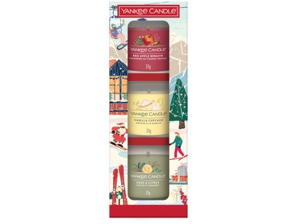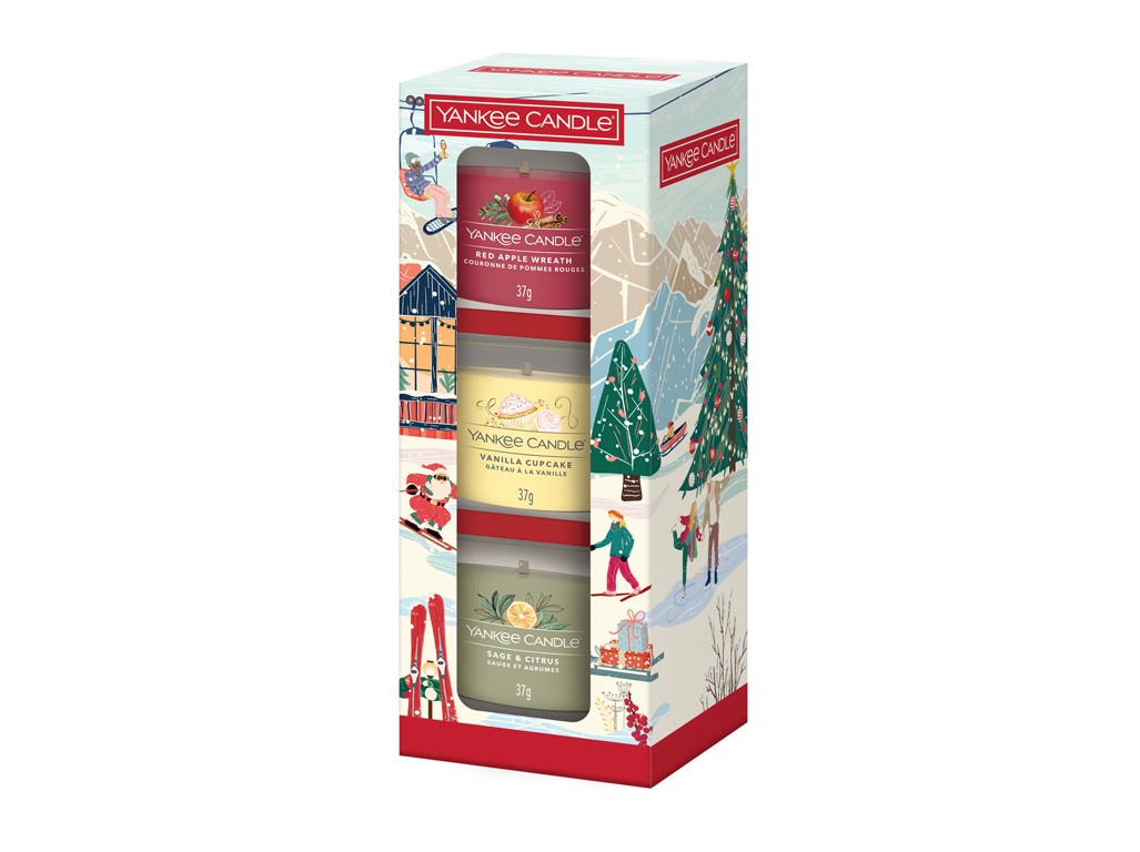 Tato vánoční sada je nenákladným a krásným dárkem pro vaše partnerky, kamarádky či kolegyně. Mohou vyzkoušet hned 3 vůně od Yankee Candle, a to: Red Apple Wreath, Sage & Citrus, Vanilla Cupcake. Jde o velmi oblíbené provedení skleněné votivní svíčky. K jejímu rozpouštění nepotřebujete svícínek a po vypálení vám zbyde hezký skleněný kalíšek třeba na čajovou svíčku. Každá voní až 10 hodin a intenzita vůně vás i při malé velikosti svíčky příjemně překvapí!